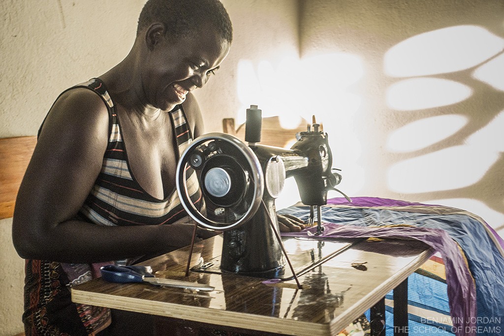 Never having sewed before, Amai Jo spent two long days switching between breastfeeding her newborn and learning the foot-pedal machine. At the end of her second day, she got it, and just then, the setting sun shone upon her bliss and I was humbled by the beauty of it all.