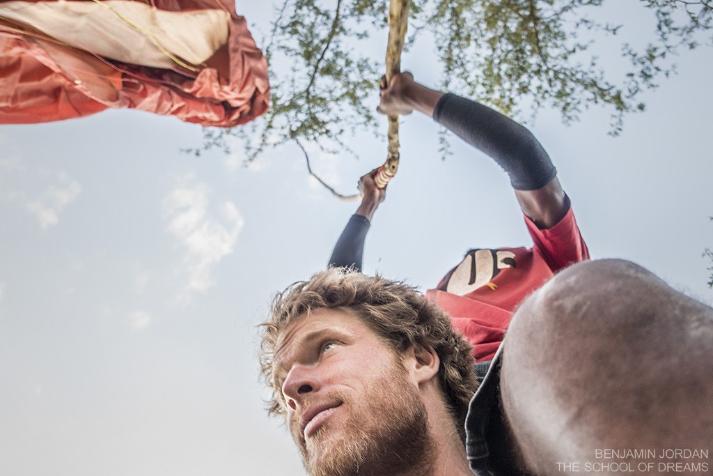 Matthew uses a large stick to remove his glider from a tree. My job, as it were, was to give him extra height and keep my mouth shut. :)