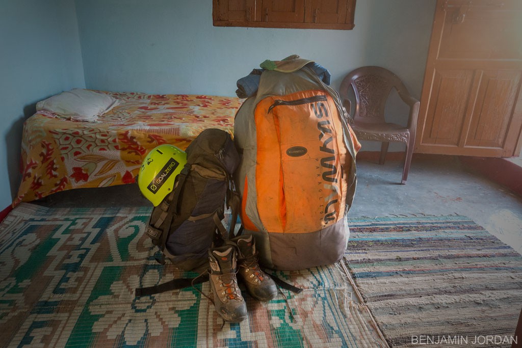 This is what 60 kg of paragliding camera and computer equipment looks like when it's not sprawled out over the ground or mounted to my back and chest as I run to catch a bus.