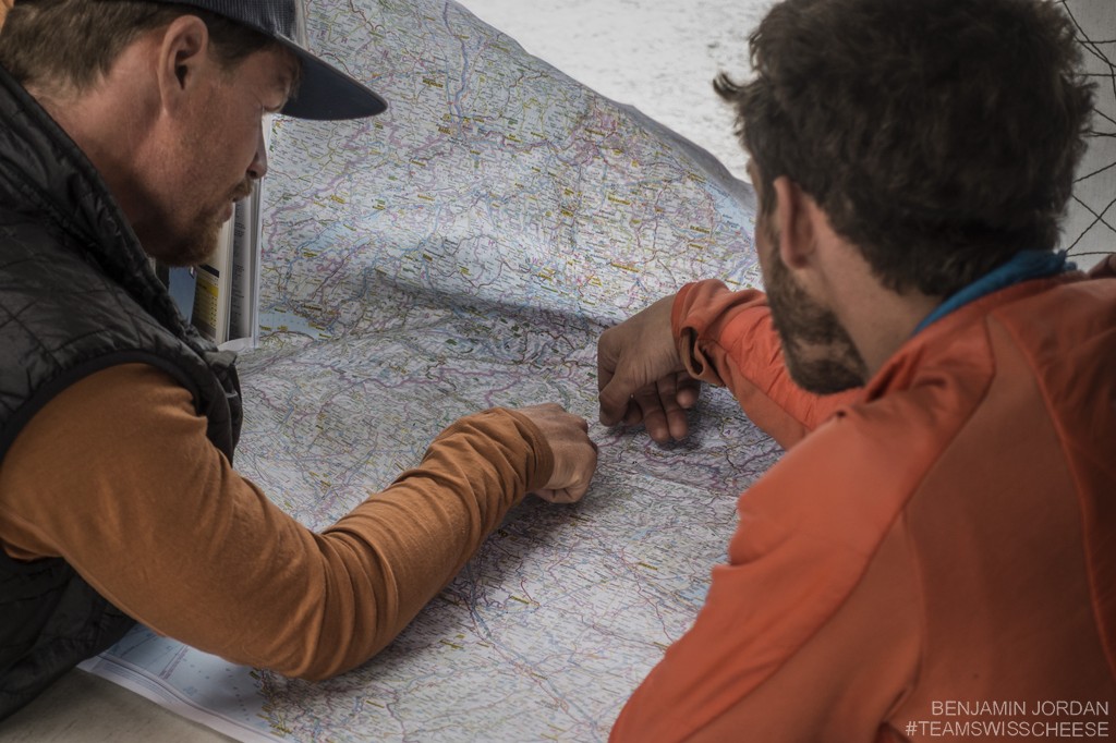 Do you like maps? If so, you'll love cross Country paragliding. Here USA3 Mitch Riley and SUI2 Krischa Berlinger plan their next days flight from a pass west of the Lake Garda turn point in Italy.