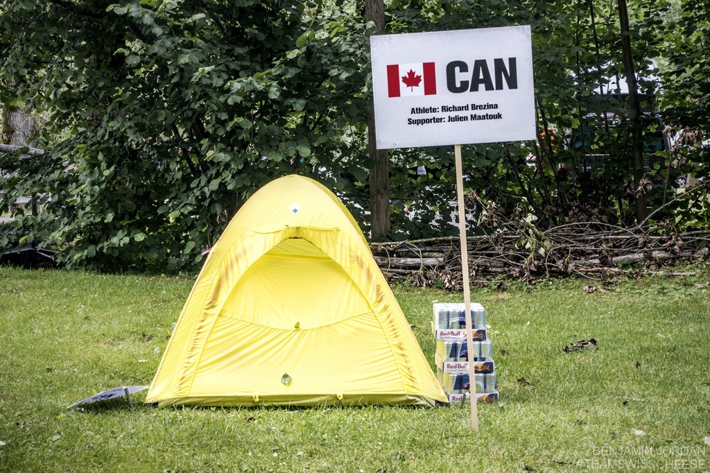For many reasons, mainly that I'm a bad loser, I chose not to compete in this edition of the X-Alps. Fortunately, another one of us did. I was particularly stuck by this stark image of his one man tent and three flats of Red Bull. :)