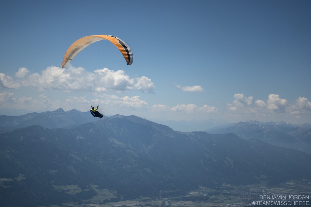 Krischa, nor I, are much into paraglider racing ..but in preparation for the X-Alps, we have been spending a little more energy trying to fly fast. Here we speed downwind on our first of three legs of a 100 km triangle in southern Austria.