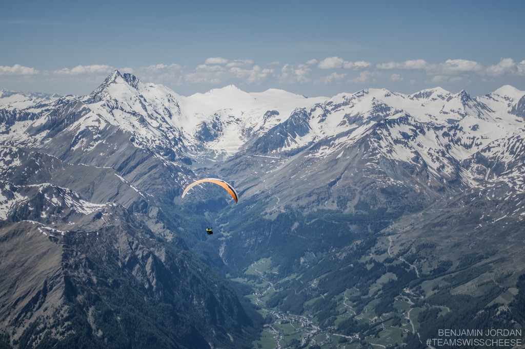 There aren't many places in the Alps where one needs to hold breath for a decent landing ..but during the X-Alps race, competitors need to cross the main crest several times between Salzburg and Monaco. Here Krischa moves steadily in into an increasing headwind as he approaches Glockner Pass.