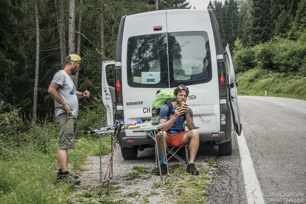 Though in a great deal of physical pain, the look in Krischa's eye said he would walk until he broke. At this pit stop he traded his walking poles in for crutches (seen on the table) and, not knowing what else to do, Nils could do nothing but support his vision to move forward, despite only being able move at half his original speed.